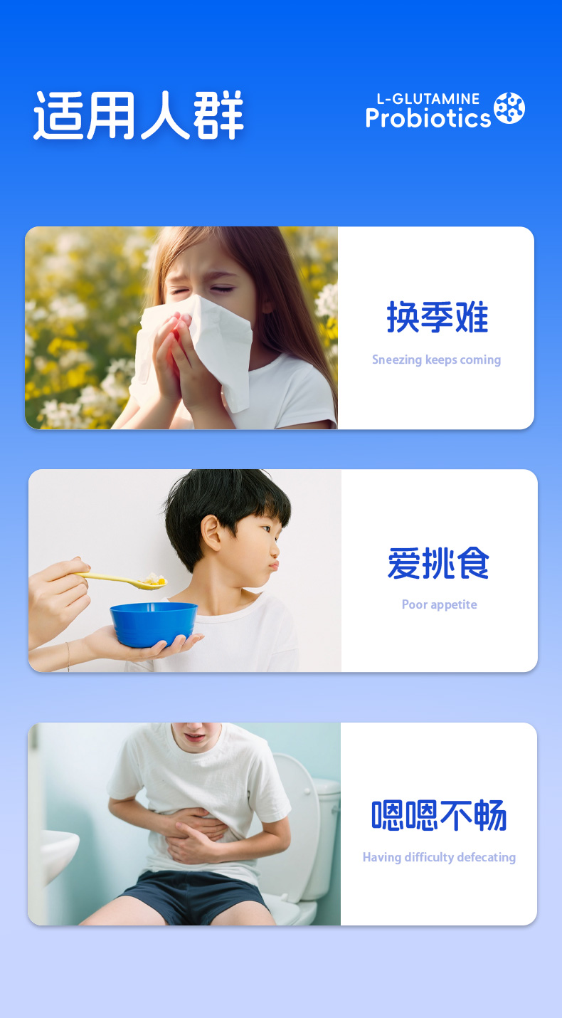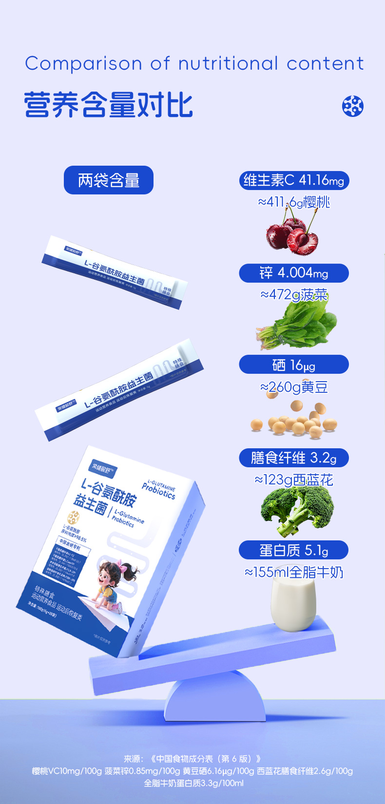 五大通路助力修夏“肠漏” ;四大专利菌株 株株有编号 ;4种维生素矿物质协同修复 ;采用天然蓝莓果粉调味,口感好