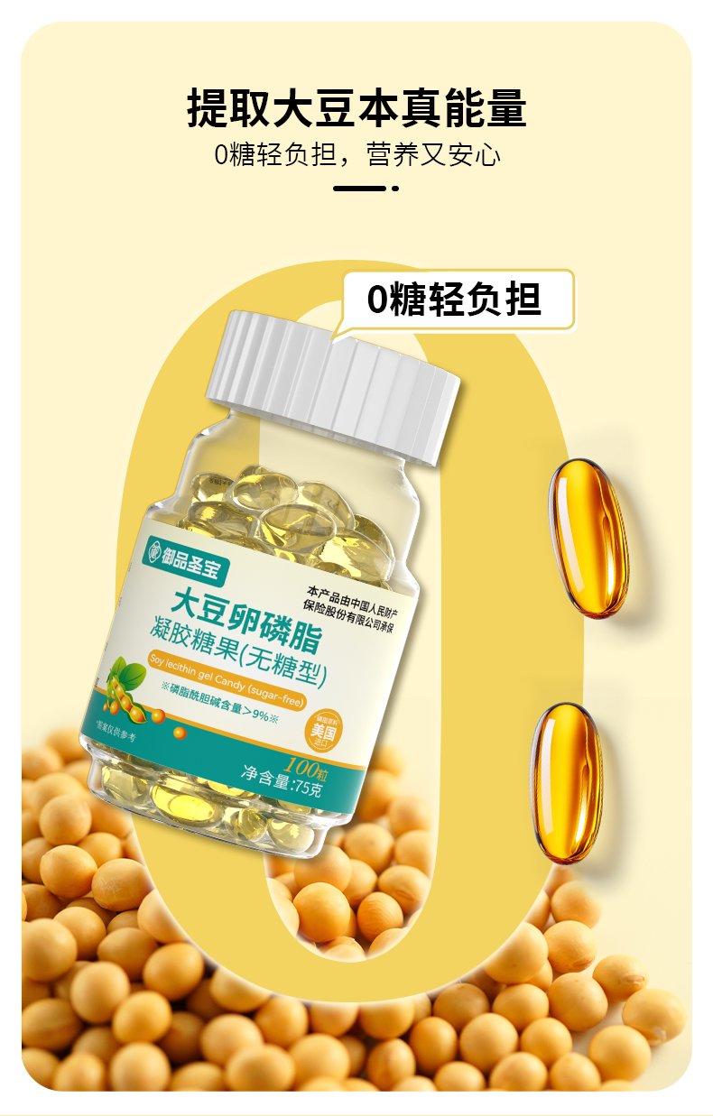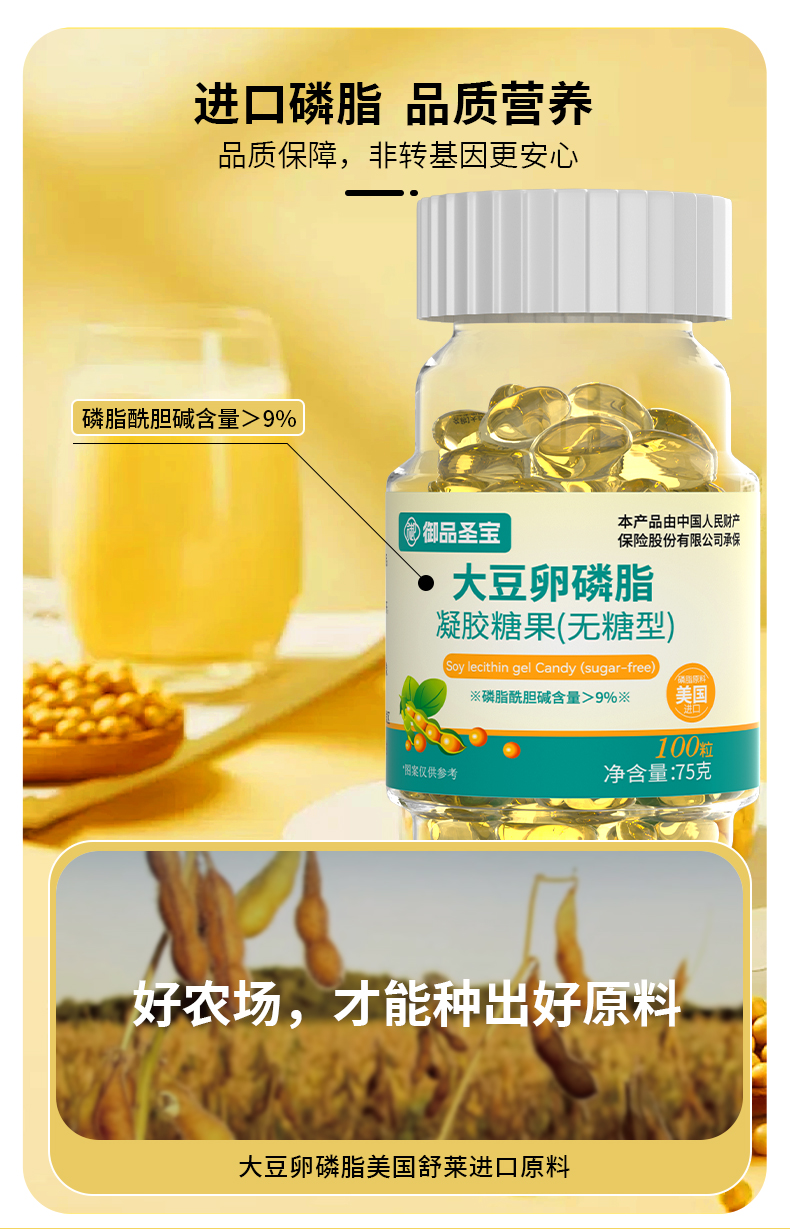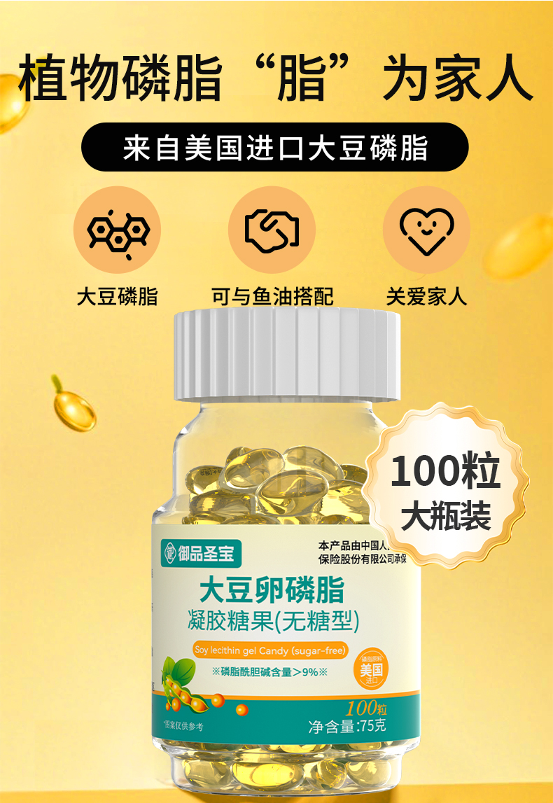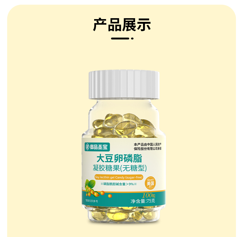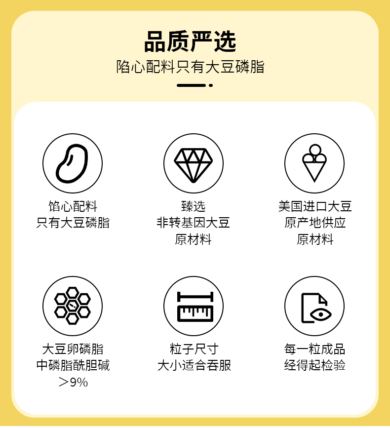 选用美国进口磷脂;磷脂酰胆碱含量>9%,;适合和鱼油搭配