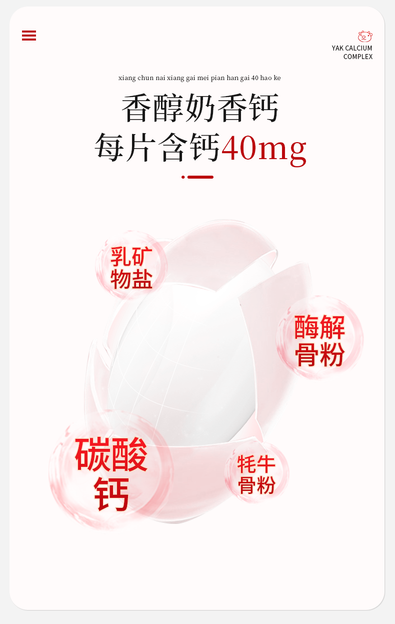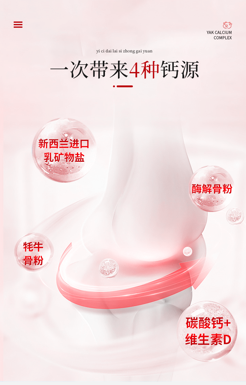 每粒含13μg维生素D3,补钙促吸收;额外添加L-赖氨酸、牦牛骨髓肽、y-氨基丁酸,促进骨骼修复;采用软胶囊剂型,口服时易吞咽,老人、成人都适用