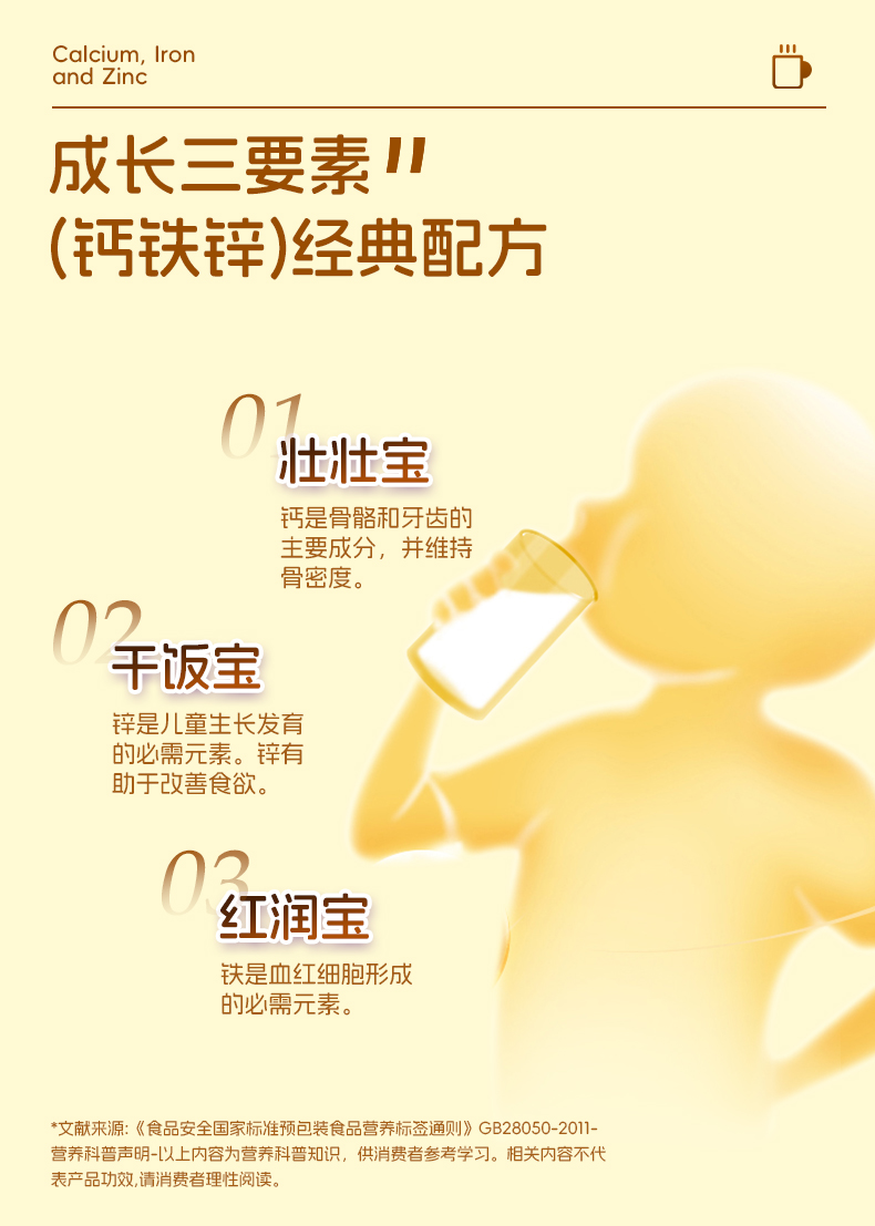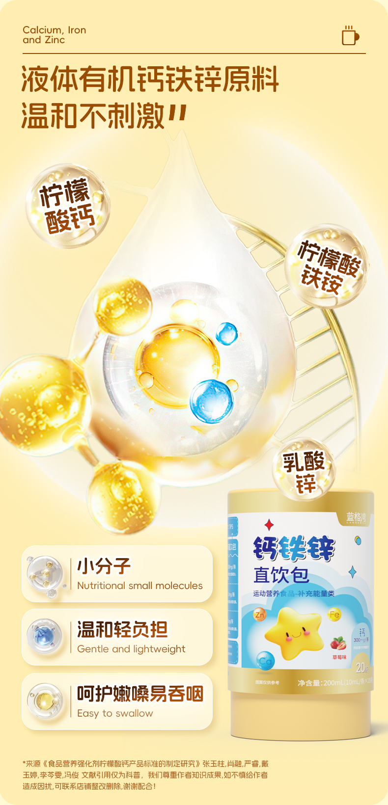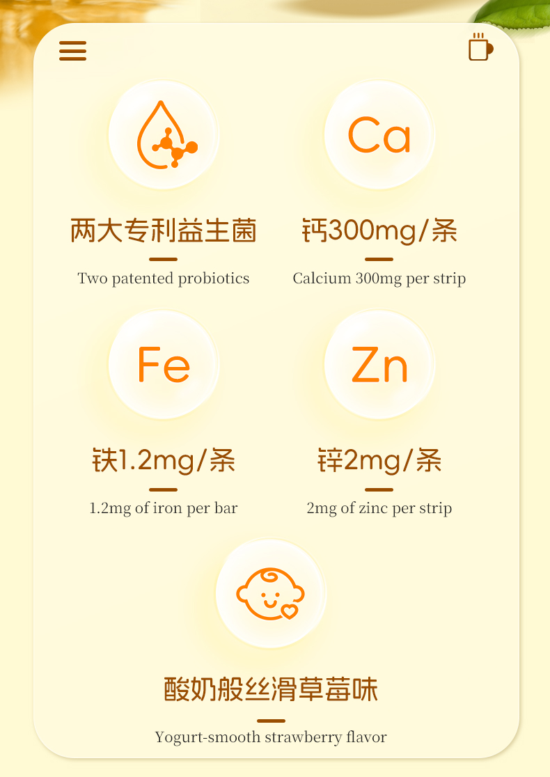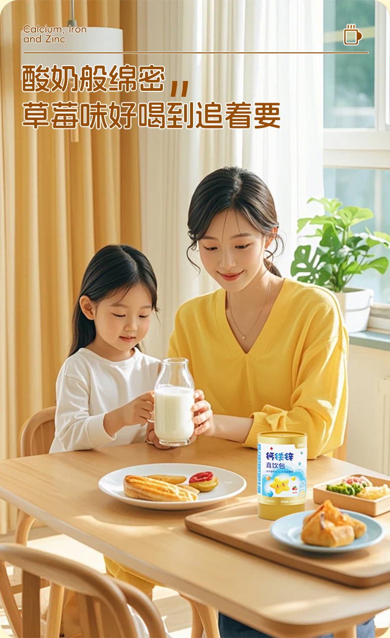 纳米级均质乳化工艺;有机钙铁锌+专利益生菌+益生元;酸奶般丝滑绵密,草莓味好口感