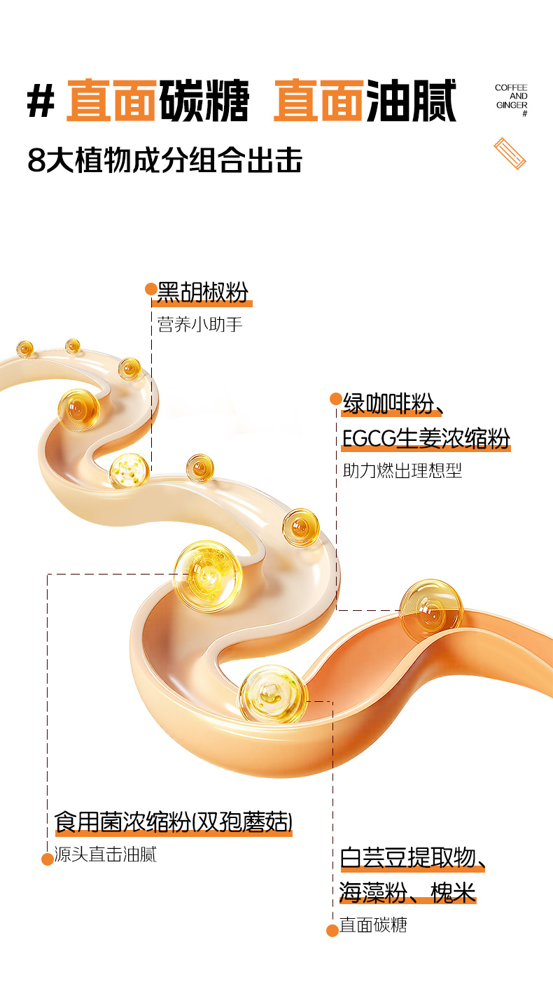 1000mg左旋肉碱,脂肪加速燃烧;阻击油、碳、糖,吃多也不怕;黑胡椒粉、B族、VC参与调控体内代谢帮助身体高效消耗能量